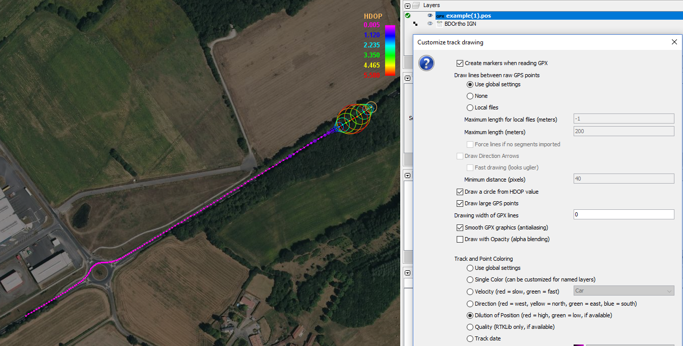 At this time, If I want to see the trace on an aerial imagery, I have to convert .pos to gpx to open it in Josm, and I lose many useful informations in the process.
