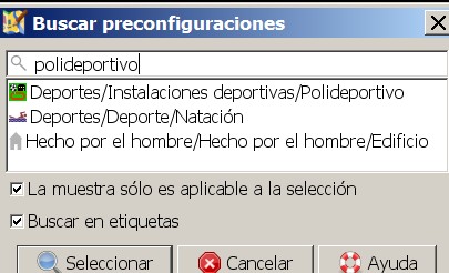 shows search result for "polideportivo" in Spanish presets