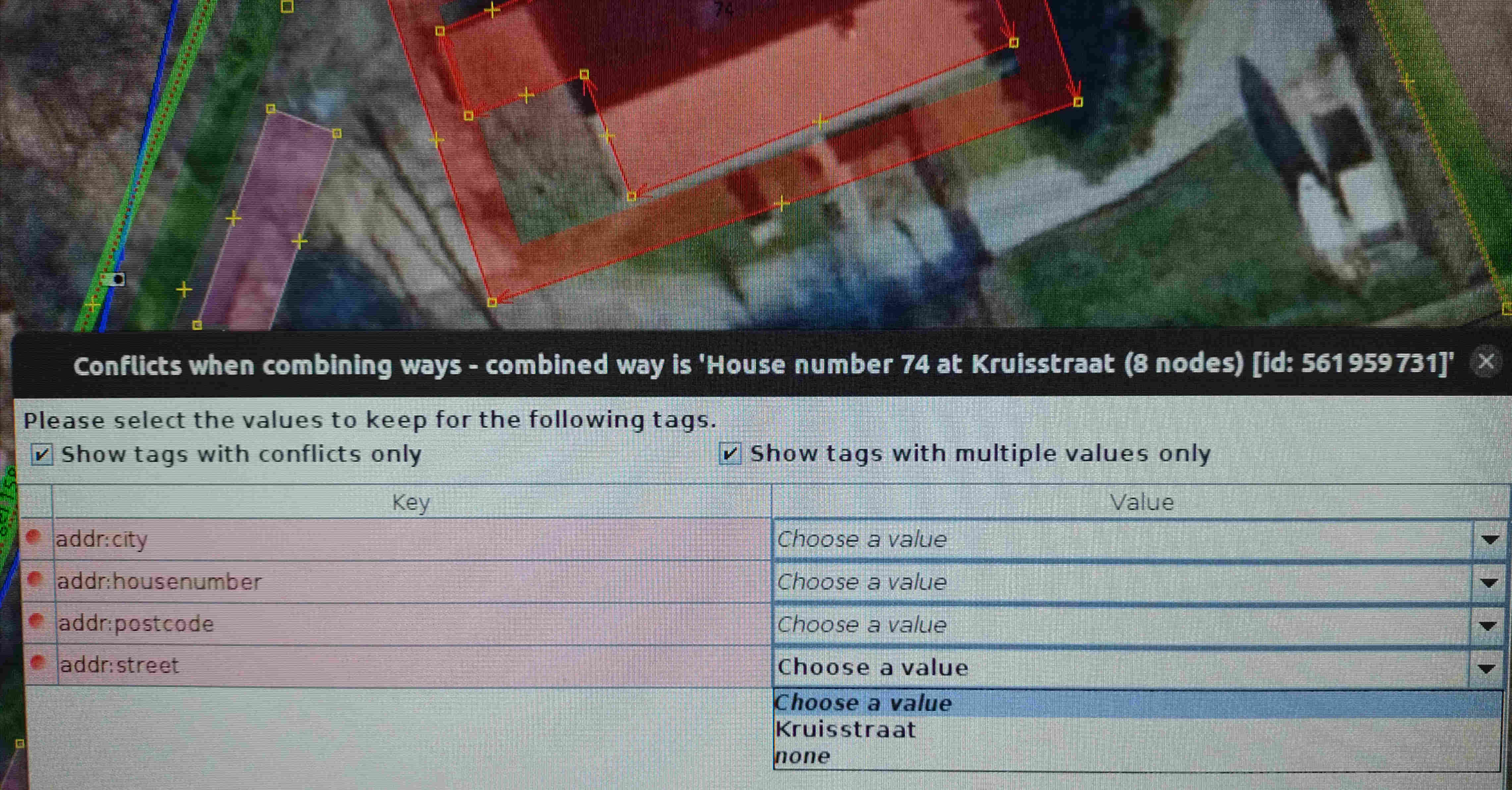 Problems with combining transactions "Replace geometry Ctrl+Shift-G" and "Join overlapping areas Shift-J" since the update to version 19017. They don't give the result from before. I have most problems with transaction 'Replace geometry" Ctrl+Shift-G'. I gives the windows "Conflicts when combining way".