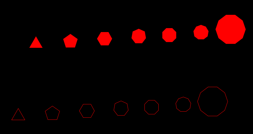 If you have the ambition, try to avoid sin and cos for performance reasons (use cached values and/or rotation matrix). This optimization will only be noticeable when there are a lot of nonagons and decagons on screen, so take it as a suggestion and not as a demand.