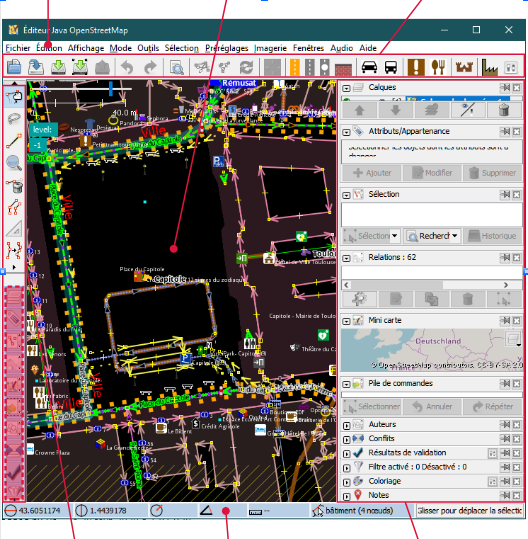 Tous les éléments d'écran ont leur propre Aide dans JOSM.