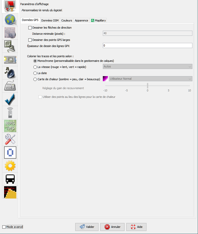 Données GPS en Mode avancé
