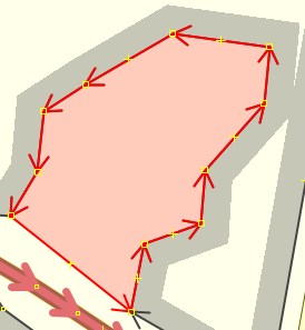 A new closed way between the 2 selected points will be created and the type of the area can be selected/entered for the new way. The way will be created from the 1st selected node in forward direction of the existing way to the 2nd selected node. This only works if the points are on the same way. To specify the way to use also select the way.