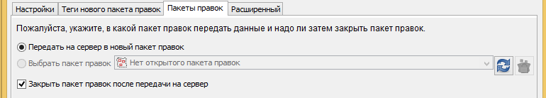 Во вкладке «Пакеты правок» вы можете выбрать, в какой пакет правок будут помещены ваши данные: