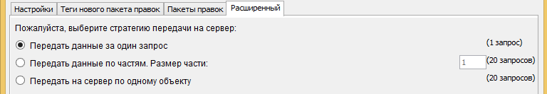 Такая загрузка множественными запросами, как правило, занимает больше времени чем загрузка единственным запросом. Чтобы загрузить каждый объект индивидуальным запросом, выберите Передать на сервер по одному объекту. Вы увидите очень подробный отчет о ходе загрузки каждого изменения, но это самый медленный вариант передачи данных.