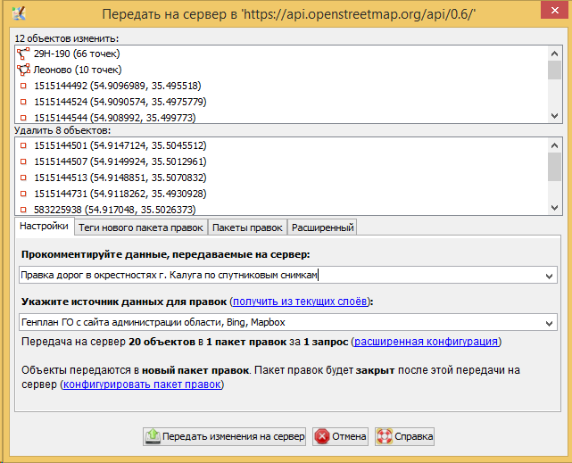 - Не используйте режим Передать на сервер по одному объекту без особых на то причин. Это устаревший вариант для работы со старыми версиями сервера OSM.